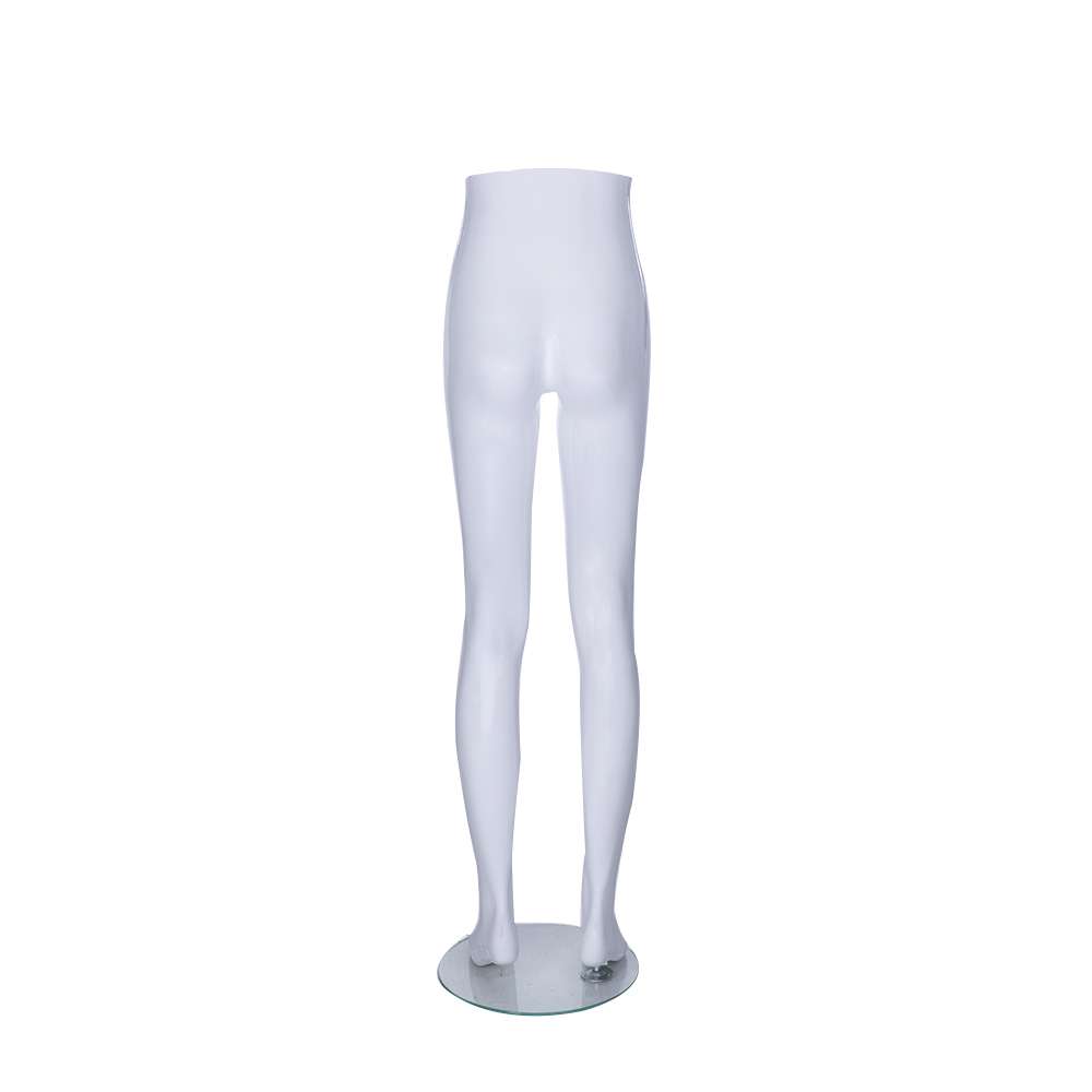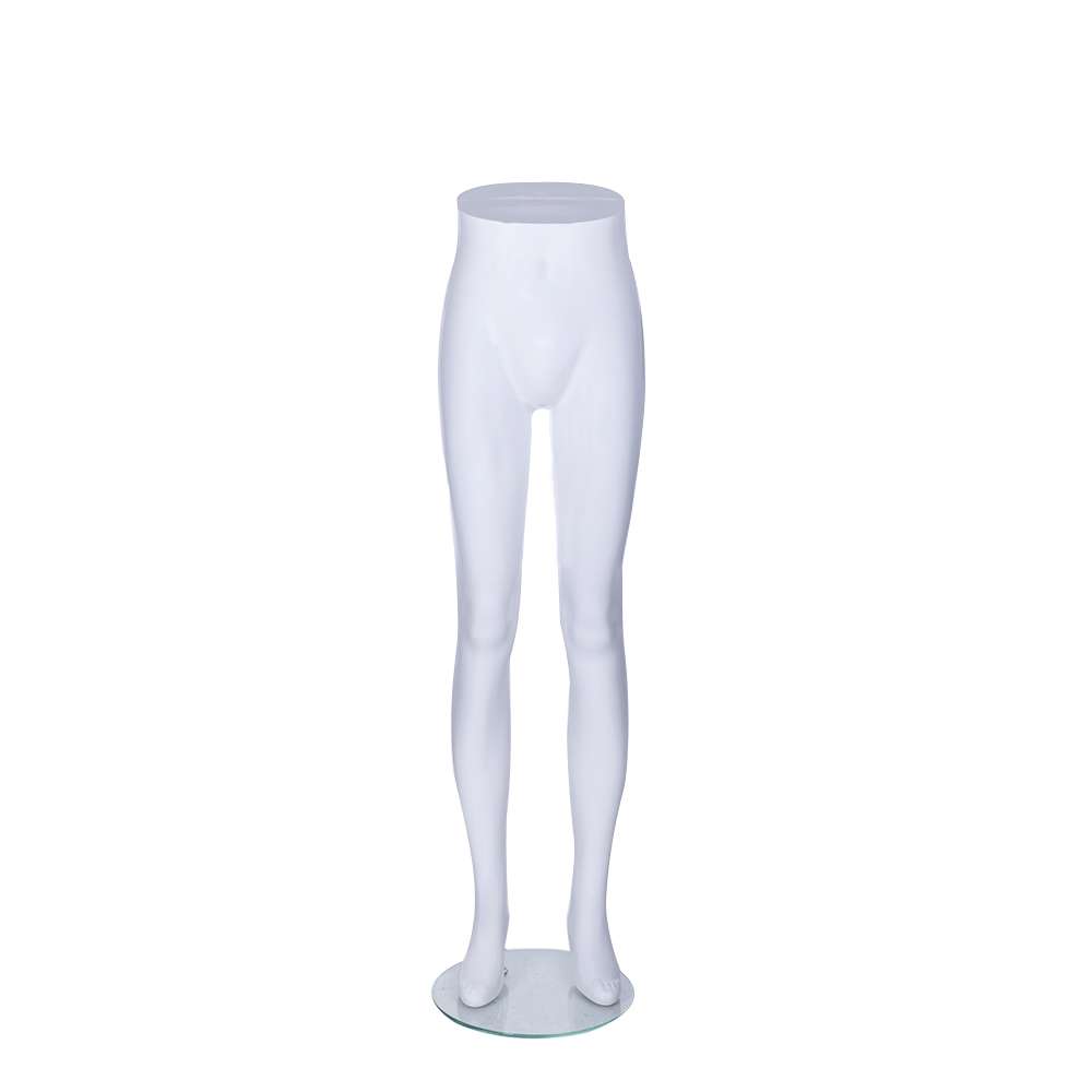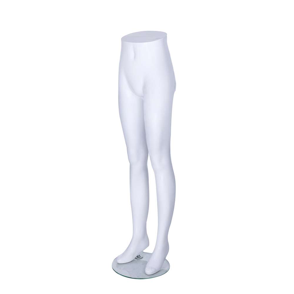 Female mannequin legs in matte white polypropylene. Height 1180mm, hips 860mm. Durable, lightweight and ideal for displaying jeans, skirts, swimwear, lingerie and slacks in retail stores.