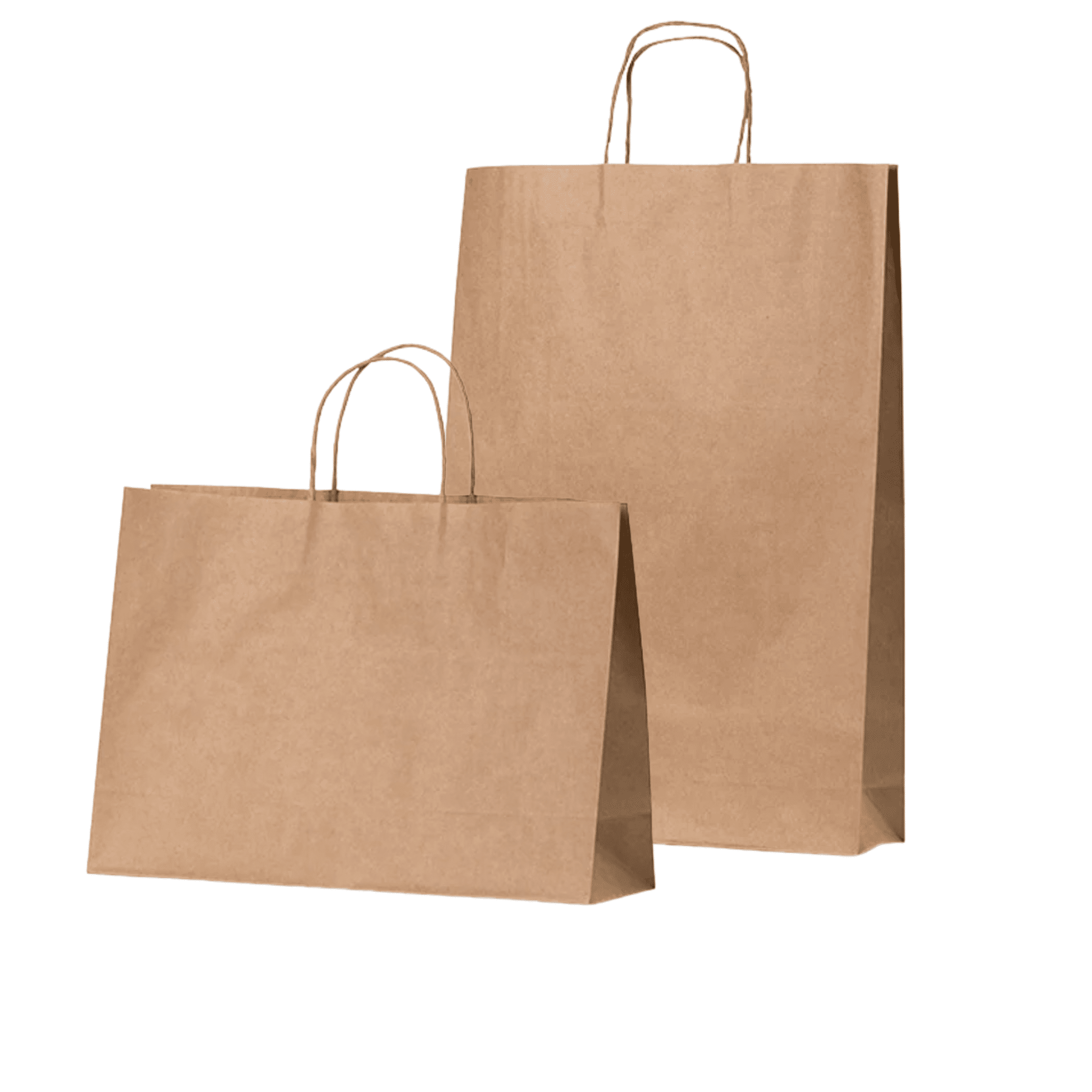 Kraft Paper Carry Bags with reinforced twisted paper handles, designed for retail and boutique packaging. Available in eleven practical landscape and portrait sizes to suit a wide range of products.