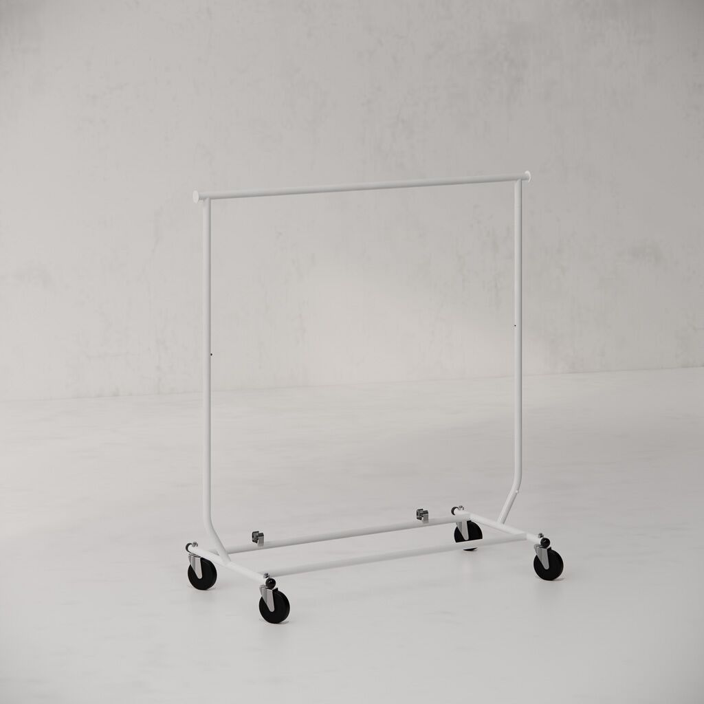 The White Single Rail Travellers Rack, also known as a salesman’s rack, is a mobile, fold-flat clothing rack designed for retailers who need flexibility, easy transport and efficient use of space. It is ideal for shop floors, pop-up stores, fashion events, seasonal sales and stock movement where fixed shopfittings are impractical.