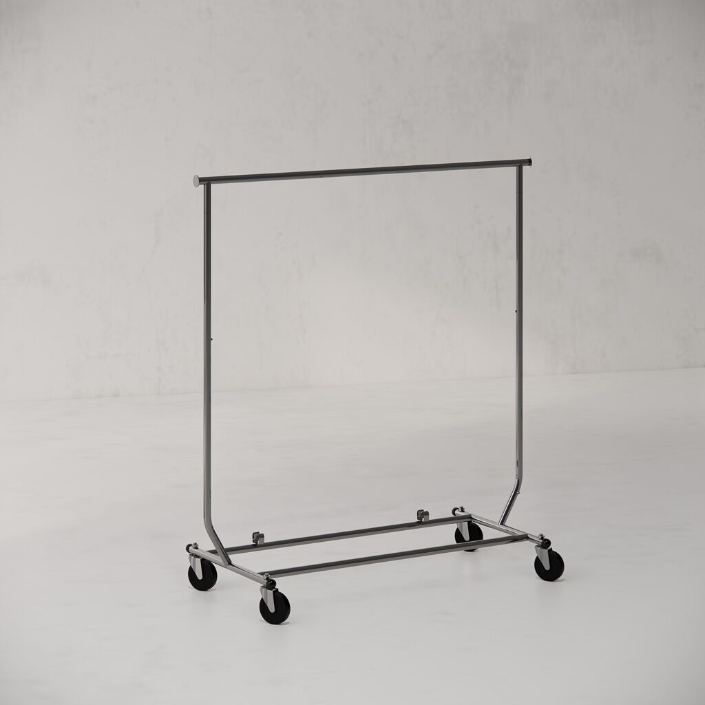 The Chrome Single Rail Travellers Rack, also known as a salesman’s rack, is a mobile, fold-flat clothing rack designed for retailers who need flexibility, easy transport and efficient use of space. It is ideal for shop floors, pop-up stores, fashion events, seasonal sales and stock movement where fixed shopfittings are impractical.