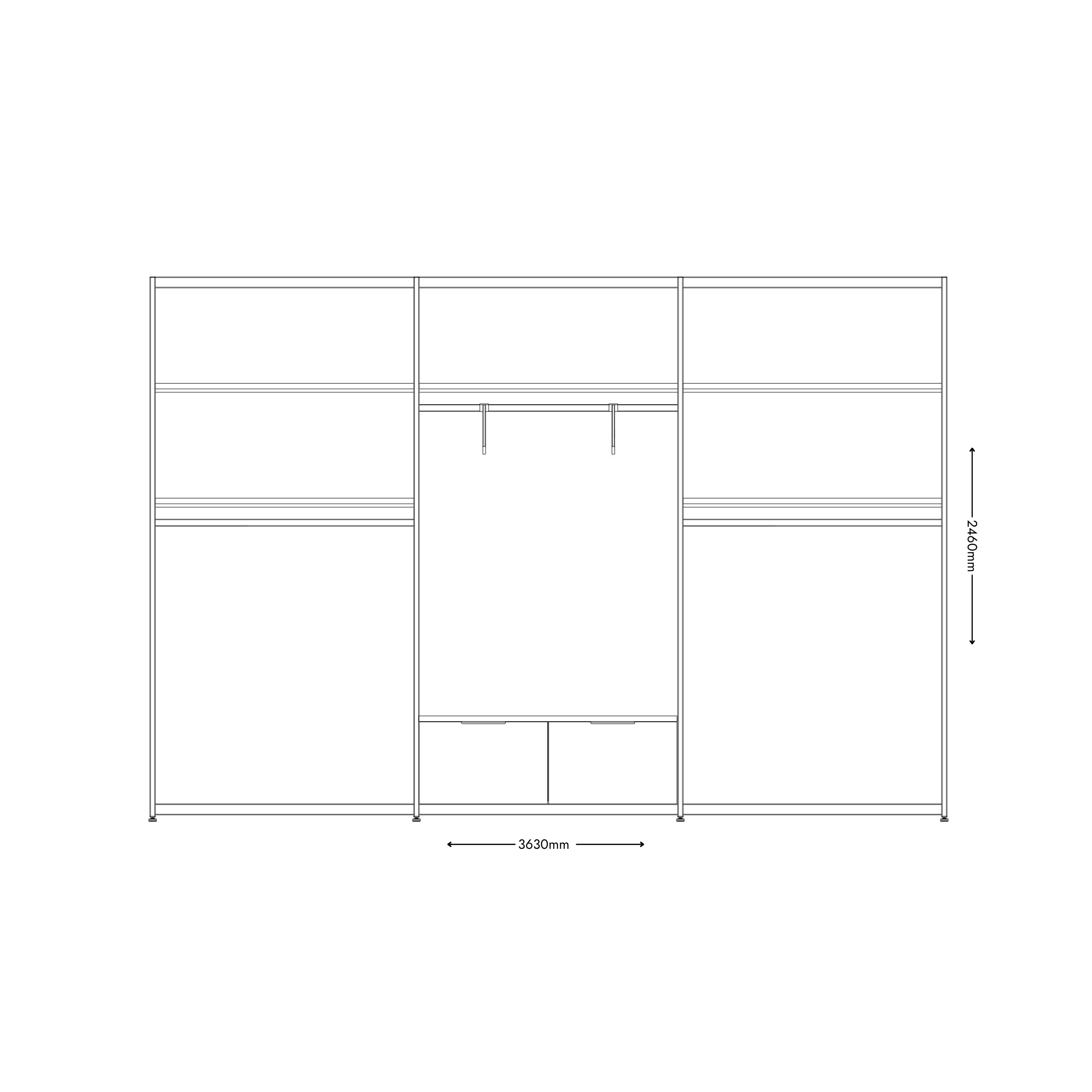 3630mm W x 460mm D x 2460mm H